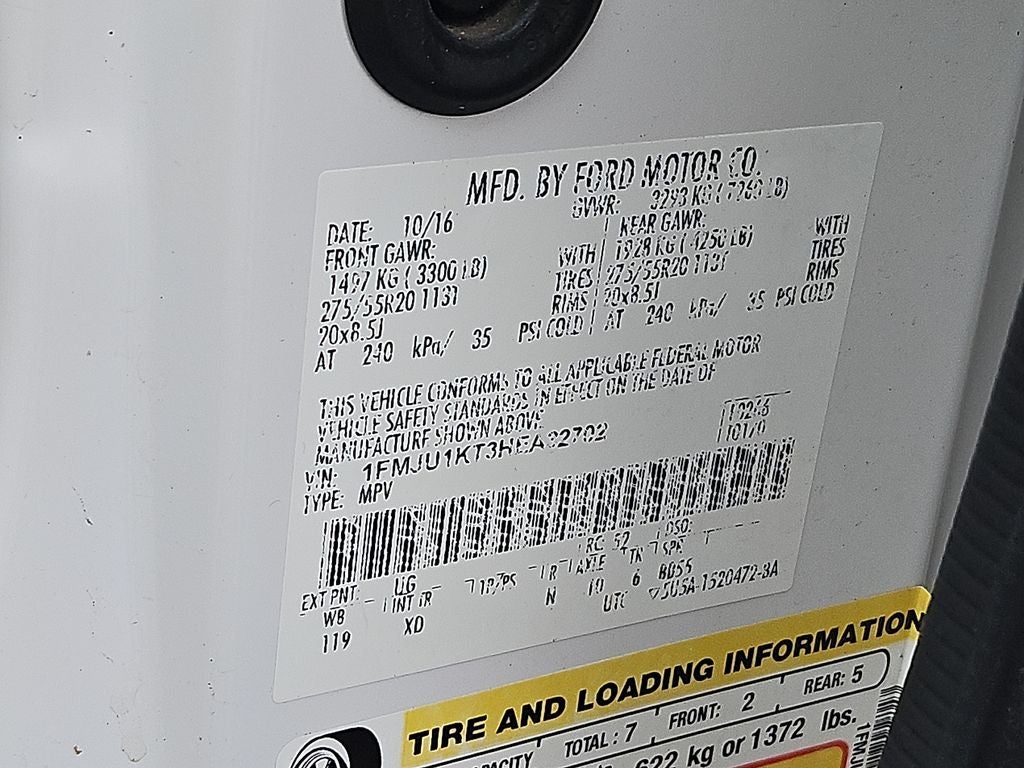 Equipment Group 301A: 20" Polished Aluminum Wheels; 3.5L EcoBoost V6 Engine; 6-Speed Automatic Transmission with SelectShift; 3.15 Axle Ratio; Power-Deployable Running Boards; Heated and Cooled Perforated Leather Front Bucket Seats; P275/55R20 AS BSW Tires; 7. 260 lbs Payload Package GVWR; Voice-Activated Touch-Screen Navigation System; Premium Sony Sound System with Single-Disc/MP3; Power Moonroof. Power Moonroof. 2nd Row Bucket Seats. Voice-Activated Touch-Screen Navigation System. White Platinum Met TC. BLIS (Blind Spot Information System). All-Weather Floor Mats. **Equipment listed is based on original vehicle build and subject to change. Please confirm the accuracy of the included equipment by calling the dealer prior to purchase.**