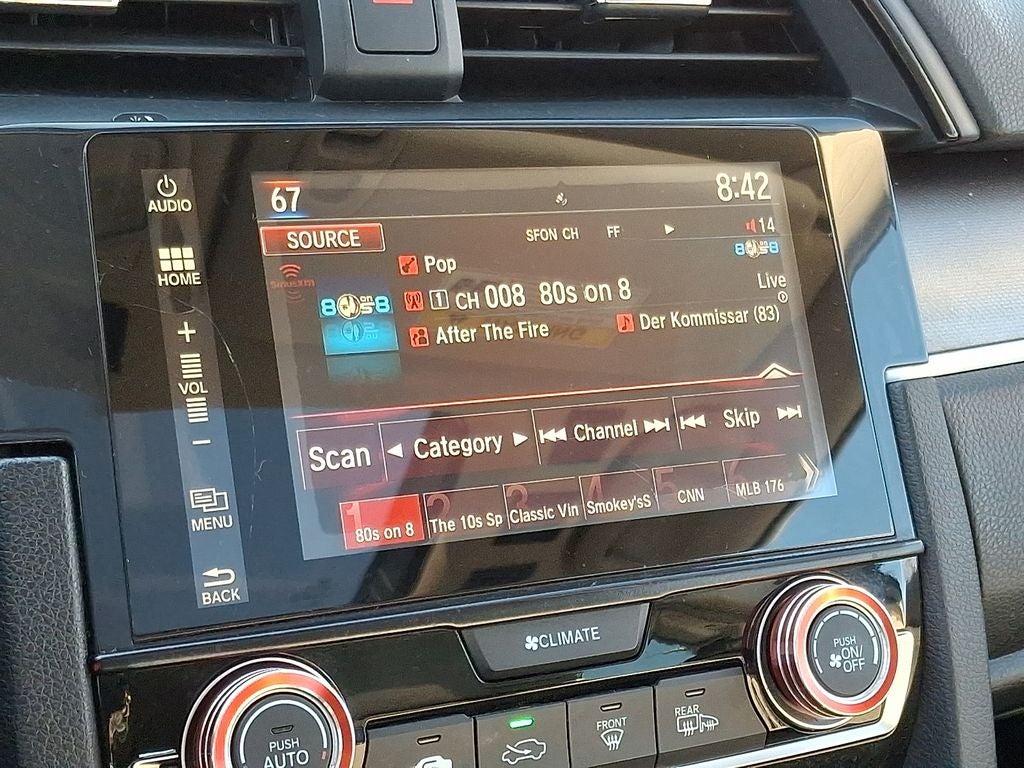 Start this Honda Civic from inside with remote start. This model has auto-adjust speed for safe following. Apple CarPlay: Seamless smartphone integration for this small car - stay connected and entertained on the go! Bluetooth® technology is built into the Honda Civic, keeping your hands on the steering wheel and your focus on the road. It comes equipped with Android Auto for seamless smartphone integration on the road. This small car offers Automatic Climate Control for personalized comfort. See what's behind you with the back up camera on this Honda Civic. Set the temperature exactly where you are most comfortable in the vehicle. The fan speed and temperature will automatically adjust to maintain your preferred zone climate. Front wheel drive on this unit gives you better traction and better fuel economy. This vehicle has a 4 Cyl, 2.0L high output engine. This Honda Civic projects refinement with a racy metallic gray exterior.