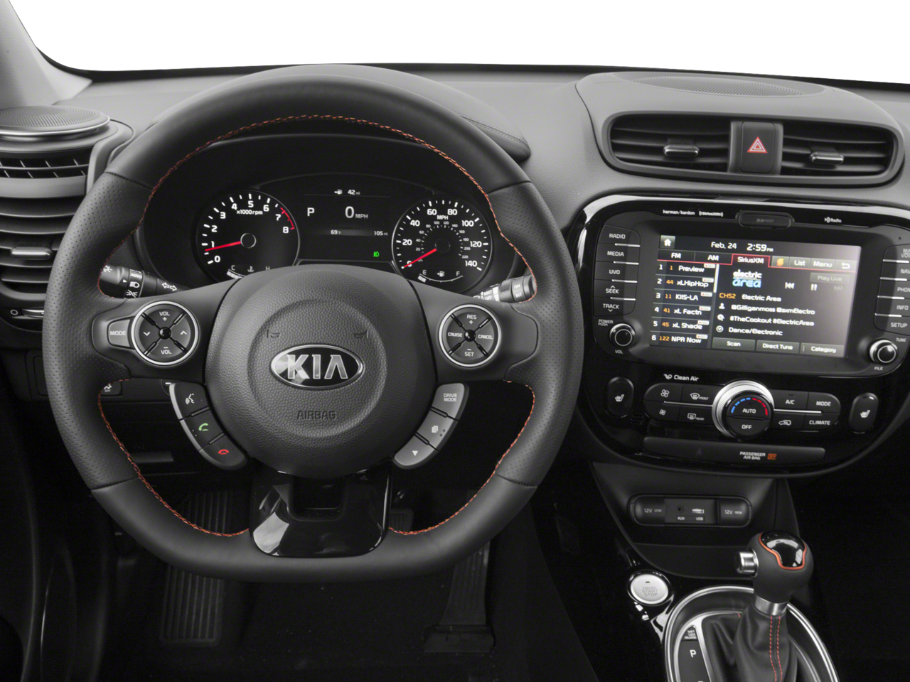 The Kia Soul offers Apple CarPlay for seamless connectivity. This vehicle is pure luxury with a heated steering wheel. This vehicle keeps you comfortable with Auto Climate. Protect this small suv from unwanted accidents with a cutting edge backup camera system. The leather seats in this vehicle are a must for buyers looking for comfort, durability, and style. The installed navigation system will keep you on the right path. This model will allow to see the road and so much more with the HID headlights. with XM/Sirus Satellite Radio you are no longer restricted by poor quality local radio stations while driving this model. Anywhere on the planet, you will have hundreds of digital stations to choose from. See the road and the surrounding area better with the Xenon HID headlamps on this model. Once you have these you'll want them on all your cars. This small suv features a hands-free Bluetooth® phone system.
