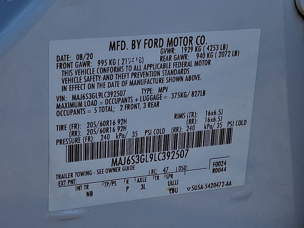 Equipment Group 200A: 16" Shadow Silver-Painted Aluminum Wheels; 3.51 Axle Ratio; 6-Speed Automatic Transmission with SelectShift; 205/60R16 AS BSW Tires; TBA GVWR; 2.0L Ti-VCT GDI I-4 Engine; AM/FM Stereo with MP3 Capable; Unique Cloth Heated Front Bucket Seats. White Platinum Met TC. **Equipment listed is based on original vehicle build and subject to change. Please confirm the accuracy of the included equipment by calling the dealer prior to purchase.**