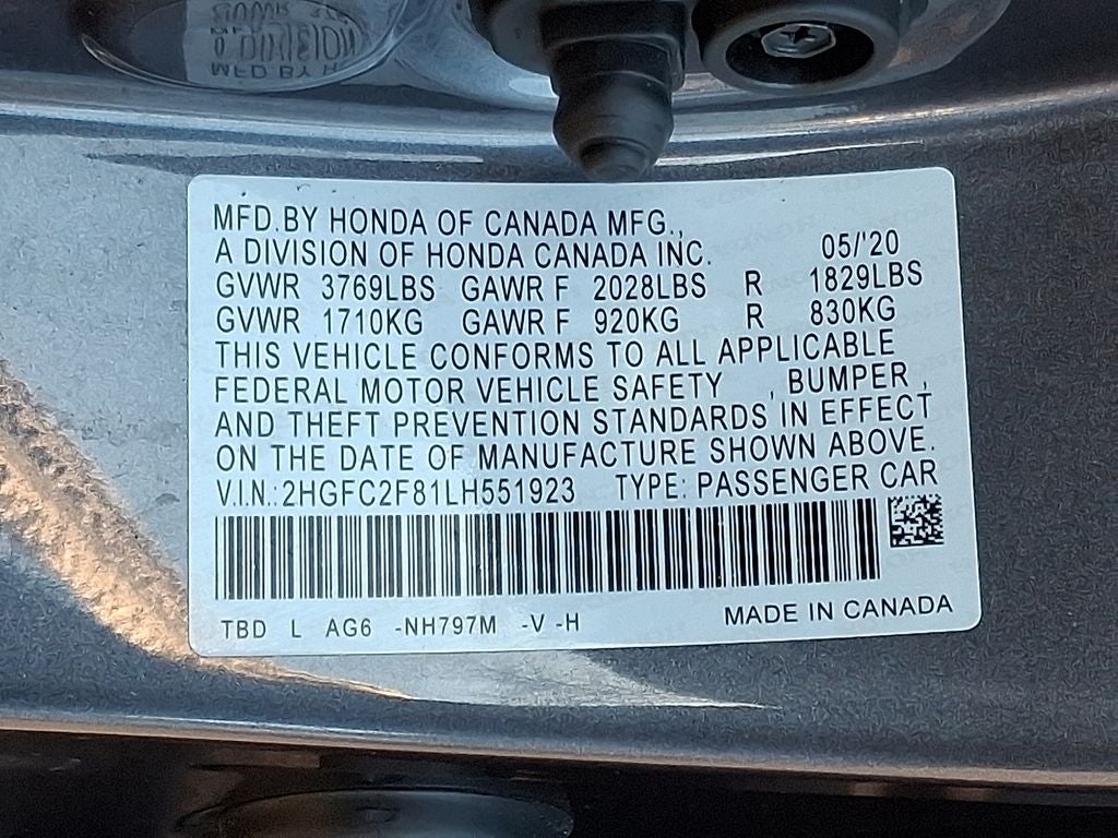 Never get into a cold vehicle again with the remote start feature on this unit. This model offers Automatic Climate Control for personalized comfort. This model has automated speed control that adjusts to maintain a safe following distance, enhancing highway driving convenience. Protect this vehicle from unwanted accidents with a cutting edge backup camera system. This vehicle offers Android Auto for seamless smartphone integration. This 2020 Honda Civic features a hands-free Bluetooth® phone system. The leather seats in the vehicle are a must for buyers looking for comfort, durability, and style. Apple CarPlay: Seamless smartphone integration for this unit - stay connected and entertained on the go! This vehicle projects refinement with a racy metallic gray exterior. Maintaining a stable interior temperature in this unit is easy with the climate control system. Front wheel drive on the vehicle gives you better traction and better fuel economy. This model has a 4 Cyl, 2.0L high output engine.