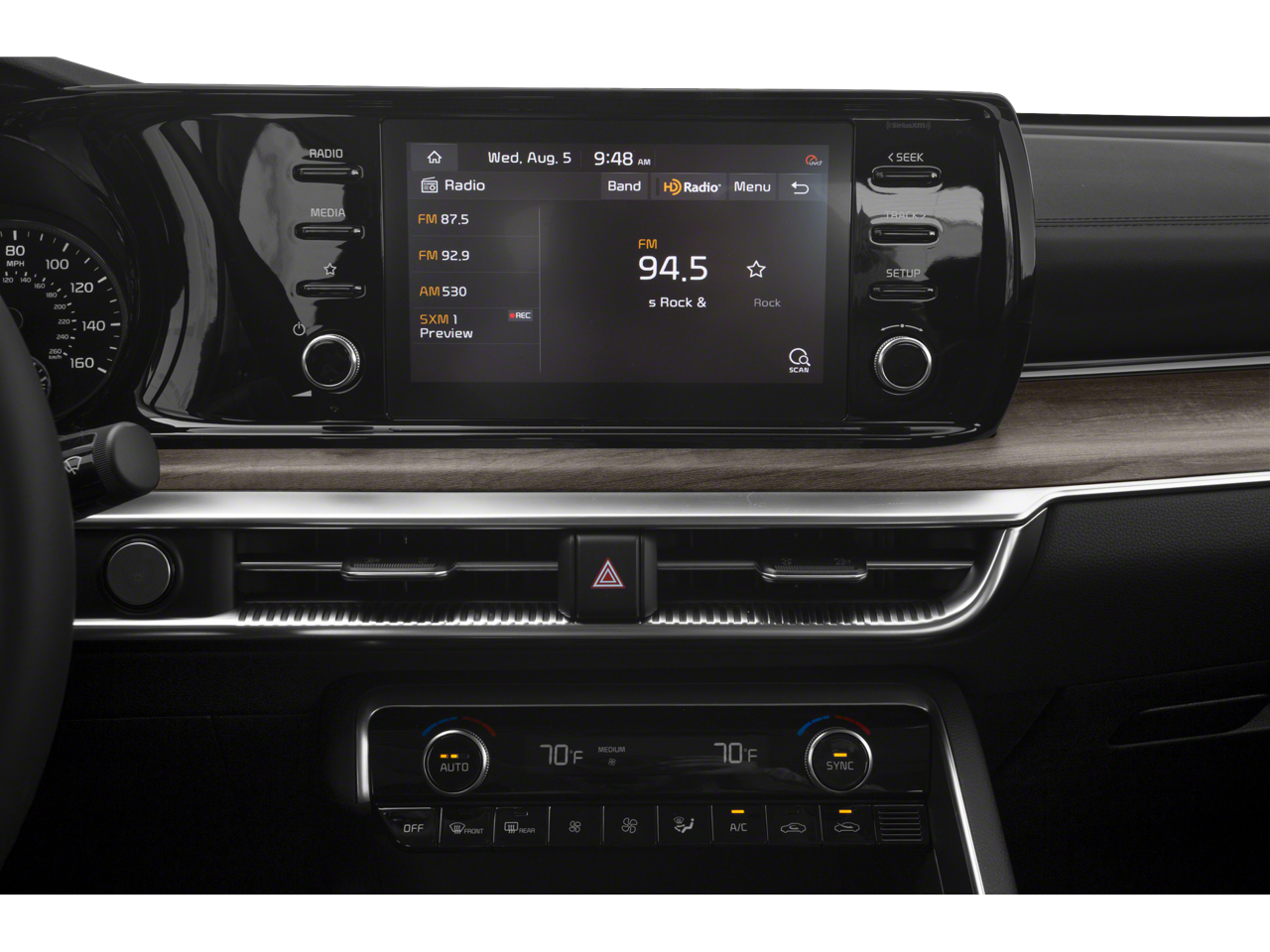 The leather seats in this mid-size car are a must for buyers looking for comfort, durability, and style. Apple CarPlay: Seamless smartphone integration for this unit - stay connected and entertained on the go! Bluetooth® technology is built into this mid-size car, keeping your hands on the steering wheel and your focus on the road. Never get into a cold vehicle again with the remote start feature on this model. This vehicle's Lane Departure Warning helps keep you in your lane. See what's behind you with the back up camera on the vehicle. This unit keeps you comfortable with Auto Climate. The installed navigation system will keep you on the right path. The state of the art park assist system will guide you easily into any spot. The Kia K5 employs advanced tech for collision avoidance, enhancing safety on the road. with XM/Sirus Satellite Radio you are no longer restricted by poor quality local radio stations while driving this mid-size car. Anywhere on the planet, you will have hundreds of digital stations to choose from.