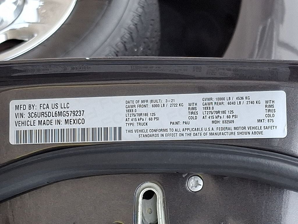 Bluetooth® technology is built into the Ram 2500, keeping your hands on the steering wheel and your focus on the road. See what's behind you with the back up camera on the vehicle. Quickly unlock the Ram 2500 with keyless entry. This unit emanates grace with its stylish gray exterior. Greater towing safety becomes standard with the installed trailer brake. Set the temperature exactly where you are most comfortable in this 3/4 ton pickup. The fan speed and temperature will automatically adjust to maintain your preferred zone climate. When you encounter slick or muddy roads, you can engage the four wheel drive on this Ram 2500 and drive with confidence. This model has a 6 Cyl, 6.7L high output engine. It has an automatic transmission. This 2021 Ram 2500 has a diesel engine. Easily set your speed in this Ram 2500 with a state of the art cruise control system. Increase or decrease velocity with the touch of a button.