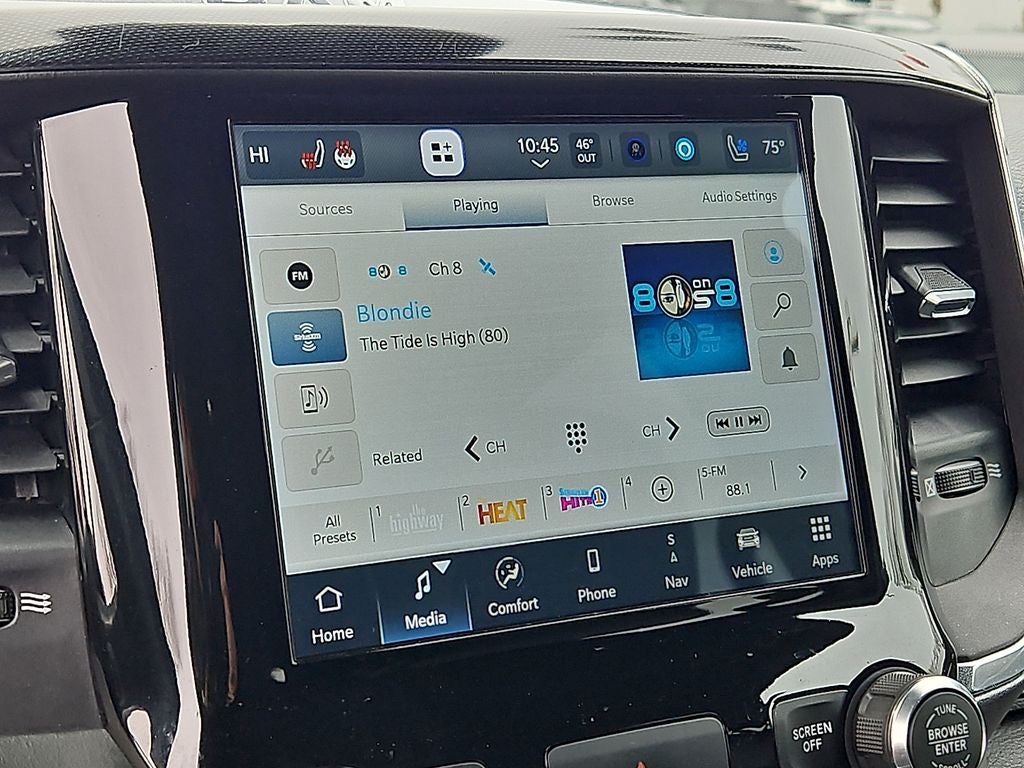 Quick Order Package 25H Laramie. Laramie Level II Equipment Group: Remote Tailgate Release; Harman/kardon 19 Speaker Premium Sound; Auto High Beam Headlamp Control; Blind Spot and Cross Path Detection; Rain Sensitive Windshield Wipers; ParkSense Front/rear Park Assist with Stop; Wireless Charging Pad; Foam Bottle Insert (door Trim Panel); 2nd Row in Floor Storage Bins; Uconnect 5 Navigation Radio with 8.4" Display. Sport Appearance Package: 275/55R20 OWL All Season Tires; Twill Film Appliques; Leather Trimmed Bucket Seats; Exterior Mirrors with Supplemental Signals; Body Color Premium Power Mirrors; Sport Performance Hood; Sport Decal; Body Color Door Handles; Exterior Mirrors Courtesy Lamps; 20" X 9" Premium Painted Wheels with Inserts; Exterior Mirrors with Heating Element; Auto Dim Exterior Driver Mirror; Exterior Mirrors with Memory; Body Color Exterior Mirrors; Black Interior Accents; Power-Folding Mirrors; Body Color Front Bumper; Convex Wide-Angle Mirror Insert; Body Color Rear Bumper with Step Pads; Grille Surround 3 Body Color Tex 2 Black; All Plant-Installed Decals. Leather Trimmed Bucket Seats. Uconnect 5 Navigation Radio with 8.4" Display. ParkSense Front/rear Park Assist with Stop. Delmonico Red Pearlcoat. MOPAR Front and Rear Rubber Floor Mats. **Equipment listed is based on original vehicle build and subject to change. Please confirm the accuracy of the included equipment by calling the dealer prior to purchase.**