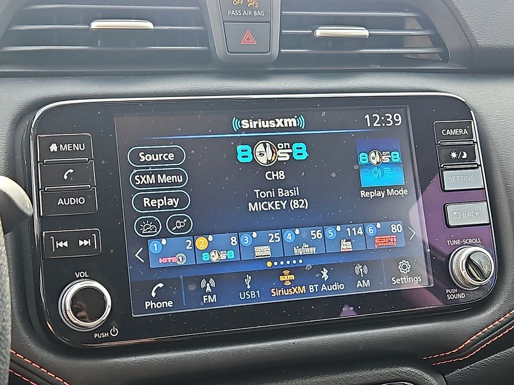 - Radio: AM/FM Audio System -inc: RDS, MP3, aux-in, 8" color touchscreen display, SiriusXM Radio, NissanConnect Services, Wi-Fi Hotspot, Bluetooth® hands-free phone system, streaming audio via Bluetooth®, interface for iPod and other compatible devices, hands-free text messaging assistant, Siri Eyes Free/Google Assistant voice recognition, 6 speakers, 12-volt DC power outlet and 3 USB ports (2-charge only)